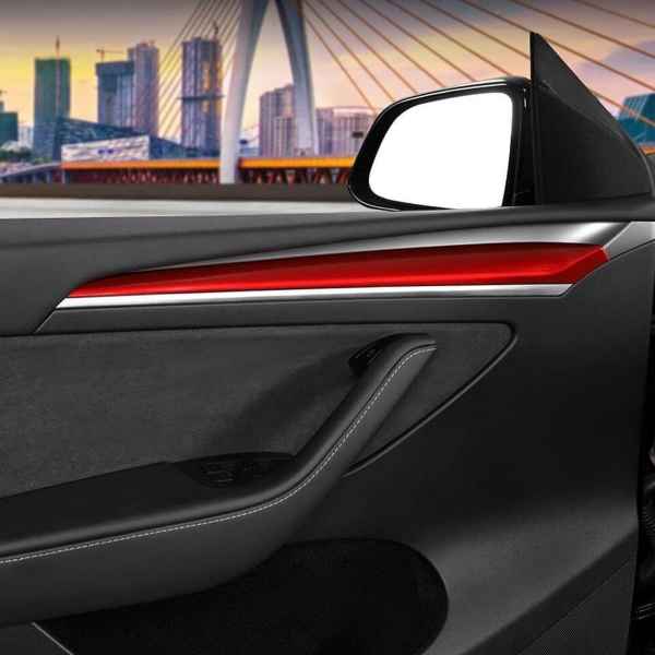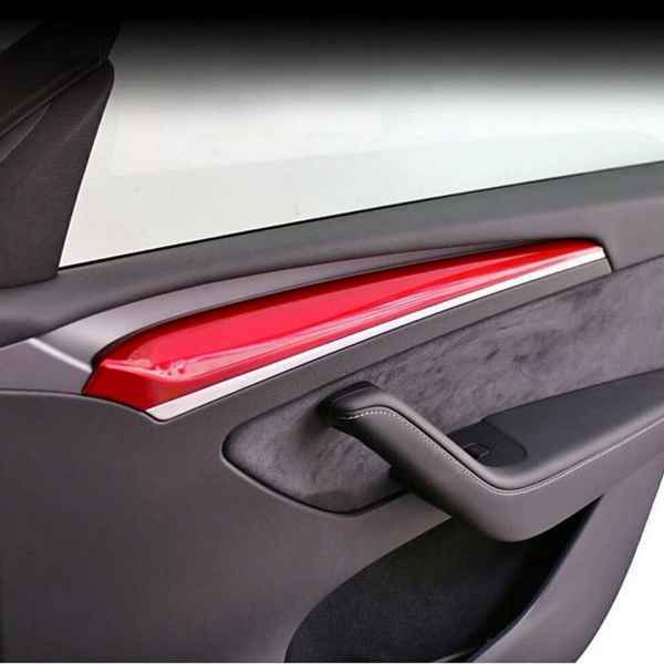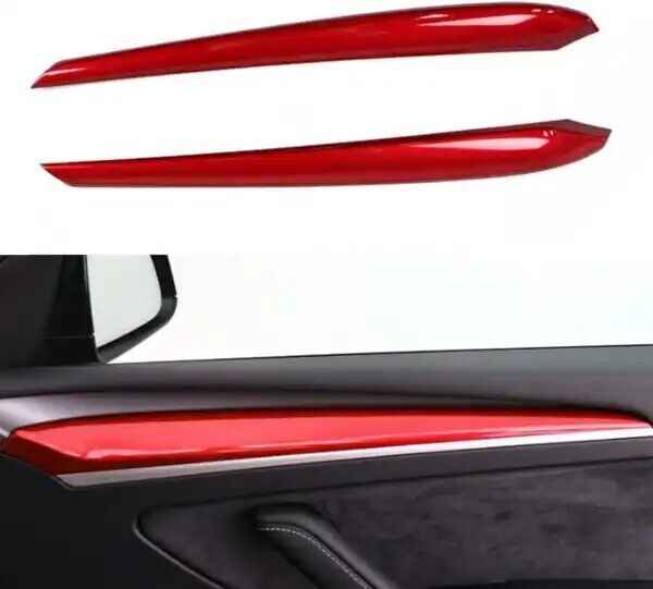 Tesla Model Y 2021-2023 2Pcs ABS Gloss Pearl White, Red Gloss Inner Front Door Panel Cover
